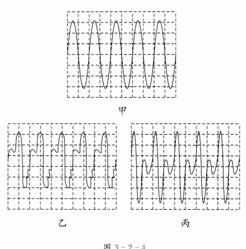 2. 观察图 3 - 2 - 4 中同一示波器(各种条件都相同)屏幕显示的甲、乙、丙三种声音的波形图,可知它们的音调____,响度____,音色____。(均选填“相同”或“不相同”)