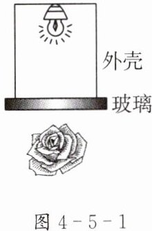 4.物理小制作活动中,小明和小亮共同制作了一个可以在地面上投射美丽图案的筒灯,如图4-5-1所示。不透明外壳内有一灯泡,灯泡发出白光后,在地面上投射出红花绿叶的美丽图案。若将灯筒内的灯泡更换为发出绿光的LED灯,将在地面上投射出( )。