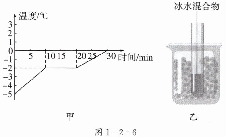 1. 图 1 - 2 - 6 甲为某物质的熔化图像。将装有冰水混合物的试管放入正在熔化的该物质中,如图 1 - 2 - 6 乙所示,则可断定( )。