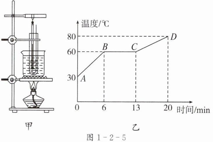 5. 小明用图 1 - 2 - 5 甲中的装置探究某种物质熔化时温度的变化规律,根据实验测得的数据作出的图像如图 1 - 2 - 5 乙所示。下列说法正确的是( )。