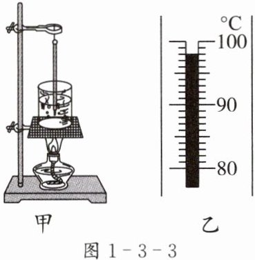 4. 小明用如图1-3-3甲所示的实验装置探究水沸腾的特点。当水沸腾时,温度计的示数如图1-3-3乙所示,由此可知实验环境下水的沸点是____℃。用酒精灯持续加热,水的温度____(选填“升高”“降低”或“不变”)。