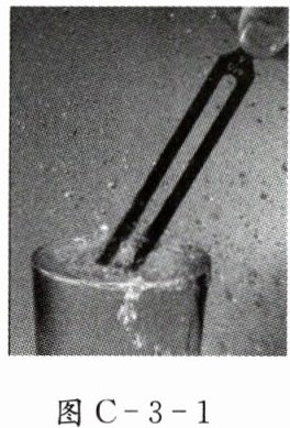 1. 如图 C - 3 - 1 所示,在做有关声现象的实验时,将正在发声的音叉轻轻插入水里,会看到水花飞溅,这样做主要是为了( )。