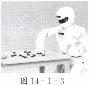 1. 如图 14-1-3 所示,机器人下象棋时,只需手指轻轻接触棋子即可“拿”起棋子,其奥秘是手指内部装有磁体,则用于制作棋子的材料可能是( )。