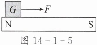 3. 如图 14-1-5 所示,重为 G 的小铁块在水平方向拉力 F 的作用下,沿条形磁体的表面从 N 极滑到 S 极,下列判断正确的是( )。
