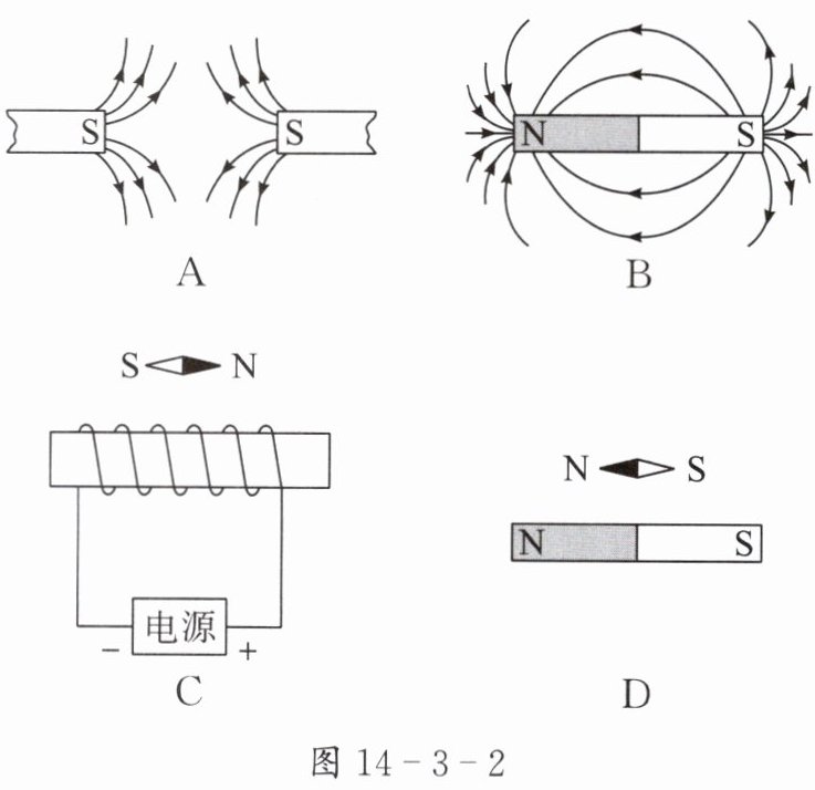 2. 如图 14 - 3 - 2 所示,磁感线的方向或小磁针(可自由转动)静止时的指向正确的是( )。