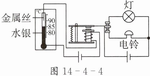 3. 图 14 - 4 - 4 是一个利用电磁继电器工作的温度自动控制装置,下列说法不正确的是( )。