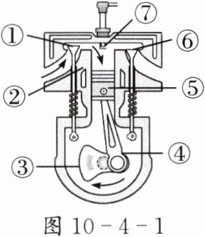 1. 图 10 - 4 - 1 为汽油机的构造示意图,据图写出各部件的名称:①____、②____、③____、④____、⑤____、⑥____、⑦____。