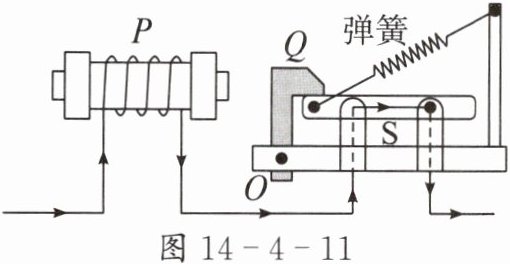 5. 图 14 - 4 - 11 是家庭电路中空气开关的原理图,当家庭电路中的电流过大时,图中 P 的磁性______,吸引 Q 向左旋转,弹簧拉起 S,切断电路。空气开关利用了电流的______效应。