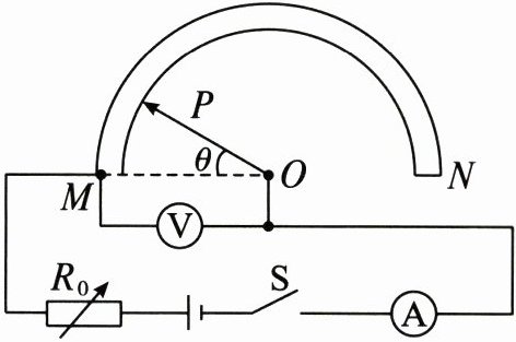 (1)将滑动头OP旋转至M处时,半圆弧电阻MN接入电路的阻值为零,此时只有$R_{0}$接入电路,此时电路中的电流I = 0.6A。