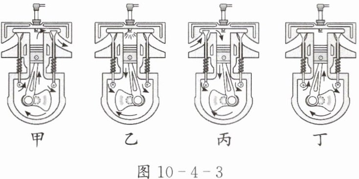 2. 图 10 - 4 - 3 为四冲程内燃机的工作过程示意图,下列说法正确的是( )。