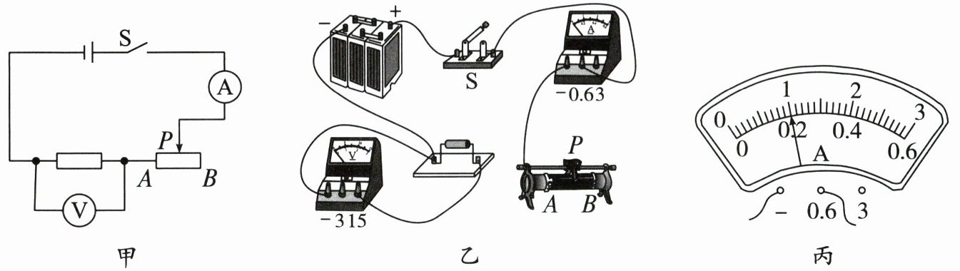 (1)如图C-Z-9甲所示,开关闭合前,滑动变阻器的滑动头$P$应移动到______(选填“$A$”或“$B$”)端。请根据图C-Z-9甲中的电路图,用笔画线表示导线将图C-Z-9乙中的实物图连接完整,要求:滑动头$P$向左移动时,电压表的示数变大。