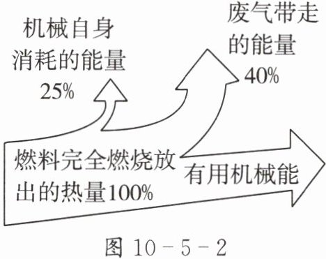 3. 某汽车行驶时的能量流向图如图10 - 5 - 2所示,该汽车在水平路面上行驶,共消耗了$ 0.8 kg $汽油。假如这些汽油完全燃烧,放出的热量为____$ J $,此过程中汽车获得的机械能为____$ J $。(汽油的热值$ q = 4.6 × 10^7 J/kg $)