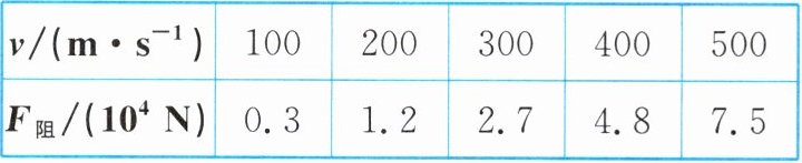 | $ F_{阻}/(10^4 N) $ | $ 0.3 $ | $ 1.2 $ | $ 2.7 $ | $ 4.8 $ | $ 7.5 $ |
