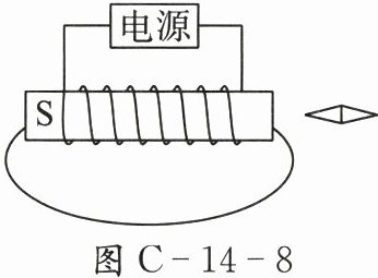13. (4分)请根据图C-14-8中给出的信息,在图中标出电源的“+”极、小磁针的S极,并用箭头标出磁感线的方向。