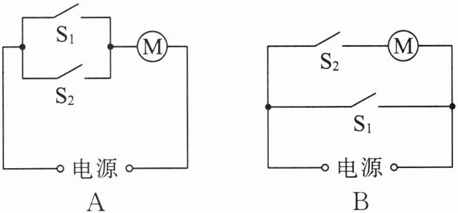 2. 在高铁站的自动检票闸机口,乘客需刷身份证,同时进行人脸识别,两条信息都符合要求时闸门(电动机)才能自动打开,乘客检票通过。身份证和人脸识别系统都相当于开关,信息符合要求后开关自动闭合。如图 11 - 2 - 5 所示的电路设计符合要求的是( )。