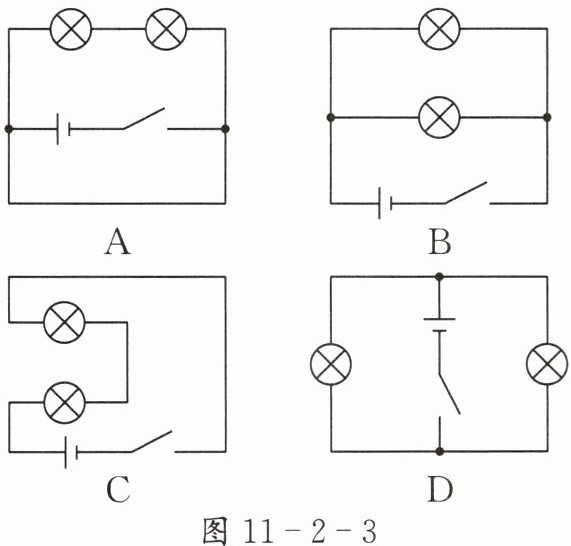 1. 如图 11 - 2 - 3 所示,两灯属于串联的电路是( )。