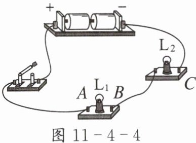 3. 将灯泡$L_1$和$L_2$接入如图11-4-4所示的电路,闭合开关,下列说法不正确的是( )。