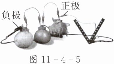 4. 如图11-4-5所示,小艳自制的水果电池的正极是铜片,负极是铝片,此时发光二极管(单向导电)发光,下列说法正确的是( )。