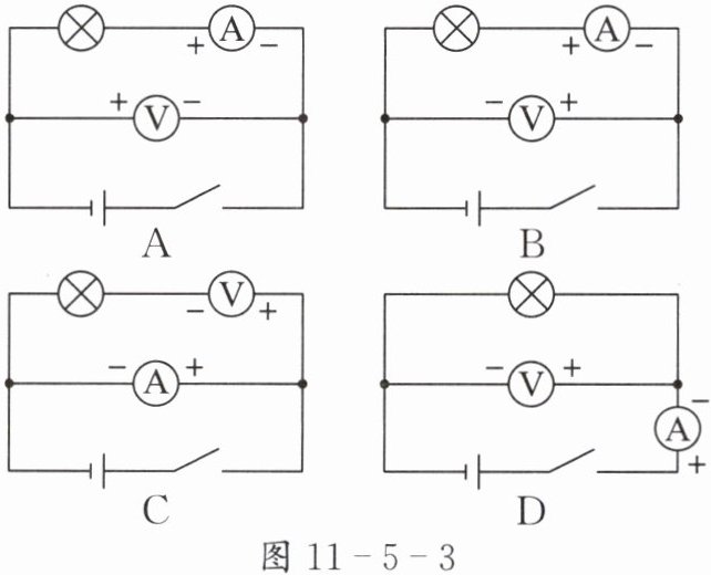 4. 学会正确使用电流表和电压表是学好电学的基础,图 11 - 5 - 3 中电表使用均正确的是( )。