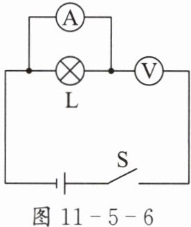 2. 小慧在做电学实验时,不小心将电压表和电流表的位置互换了,如图 11 - 5 - 6 所示,若此时将开关$S$闭合,则( )。