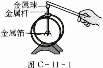 2. 图 C - 11 - 1 为验电器的示意图,当用毛皮摩擦过的橡胶棒接触验电器的金属球时,发现两金属箔张开。下列有关说法正确的是( )。