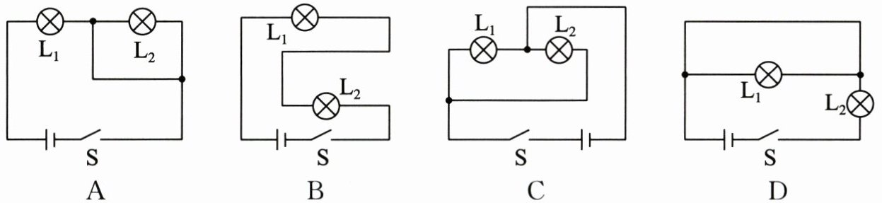 3. 如图 C - 11 - 2 所示,闭合开关 S 后,小灯泡$ L_1、$$L_2 $并联的是( )。