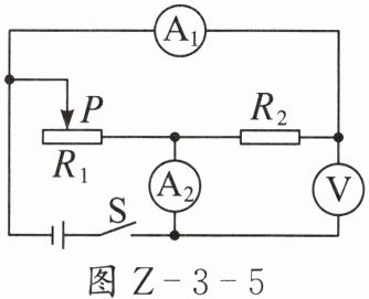 5. 如图 Z-3-5 所示,电源电压恒定$,R_2$为定值电阻。闭合开关 S 后,将滑动变阻器$ R_1$的滑动头 P 向左移动,下列说法正确的是( )。
