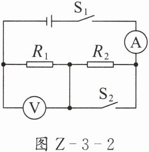 2. 如图 Z-3-2 所示,电源电压不变$,R_1、$$R_2$均为定值电阻。闭合开关$ S_1,$电压表和电流表有示数。再闭合开关$ S_2,$下列说法正确的是( )。