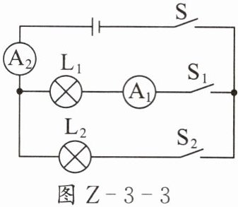 3. 如图 Z-3-3 所示,电源电压恒定。闭合开关 S、$S_1$和$ S_2,$灯$ L_1、$$L_2$都正常发光。现断开开关$ S_2,$下列说法正确的是( )。