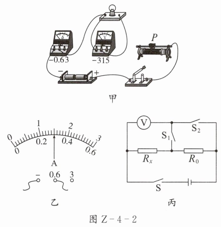 (2) 图 Z-4-1 甲电路中有一根导线连接错误,请在接错的导线上画“×”,并用笔画线表示导线画出正确的接法。