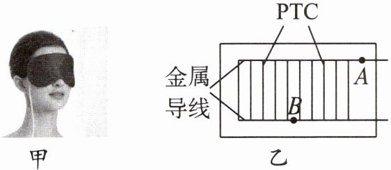 电加热眼罩中有在绝缘聚酯薄膜表面有序排列、具有发热和控温双重功能的 PTC 加热丝。该 PTC 加热丝材料是一种以钛酸钡为主的新型半导体陶瓷材料。在电加热眼罩中,如图 13 - 3 - 6 乙所示,PTC 加热丝两端与金属导线相连,形成网状结构,由 $ 6 V $ 的锂电池供电。当温度达到 $ 40^{\circ}C $ 时,PTC 加热丝的发热功率等于散热功率(即在相同时间内产生的热量与散失的热量相等),从而实现智能控温。