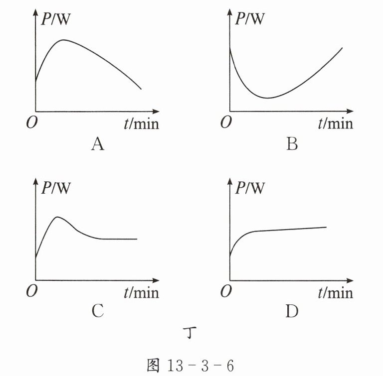 (4) 将加热电路的开关闭合,其功率随时间变化的关系图像最可能是图 13 - 3 - 6 丁中的____(填选项字母)。