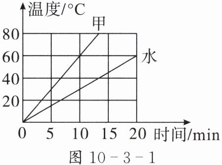 3. (多选)用两个相同的电加热器给质量同为$2kg$的甲物质和水加热,不计热量损失,它们的温度随时间变化的关系图像如图$10 - 3 - 1$所示。水的比热容为$4.2×10^3J/(kg\cdot^{\circ}C)$。下列说法正确的是( )。
