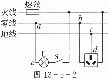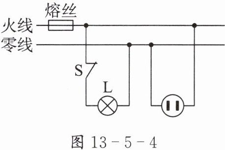 1. 图 13 - 5 - 2 是小果家的部分电路,下列说法正确的是( )。