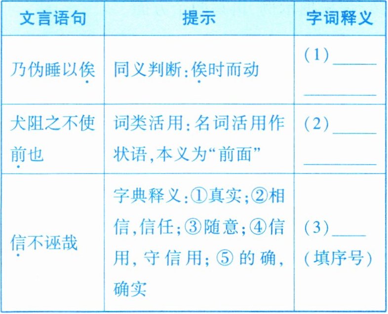 |乃伪睡以俟|同义判断:俟时而动|(1)_________|