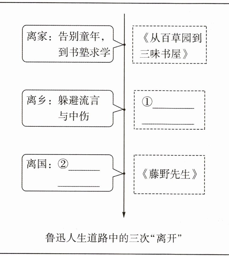 3. 为了更全面地了解鲁迅的成长经历,同学们探究了鲁迅人生道路中的三次“离开”,请结合下面信息完成相关任务。