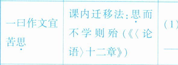 |一曰作文宜苦思|课内迁移法:思而不学则殆(《〈论语〉十二章》)|(1) |