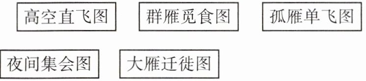 高空直飞图 群雁觅食图 孤雁单飞图 夜间集会图 大雁迁徙图______