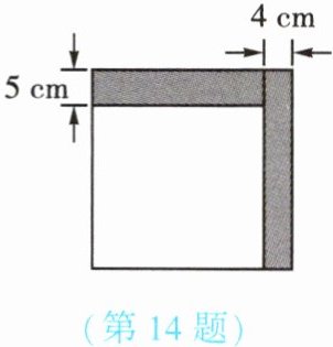14. (★★) 如图,小明将一个正方形纸片剪去一个宽为 $4$ cm 的长条后,再从剩下的长方形纸片上剪去一个宽为 $5$ cm 的长条,如果两次剪下的长条面积正好相等,那么每一个长条的面积为【