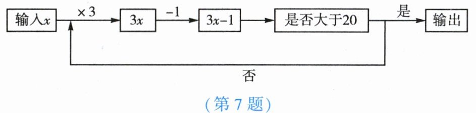 7. 按如图所示的程序计算,若开始输入的$x$值是正整数,最后输出的结果是32,则满足条件的$x$值为【