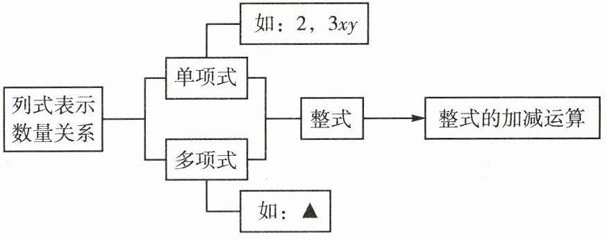 3. 在学习完“第四章 整式的加减”后,老师在黑板上画了下图. 下列选项符合▲的是【