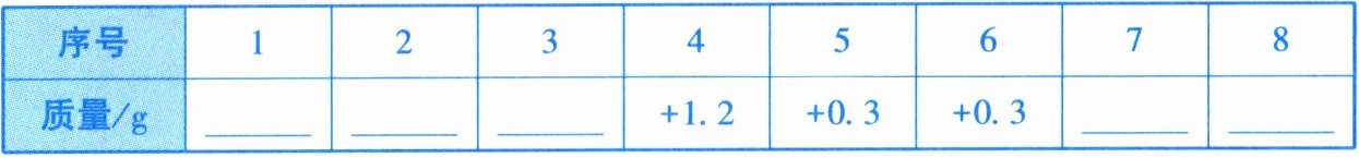 |质量/g|______|______|______|+1.2|+0.3|+0.3|______|______|