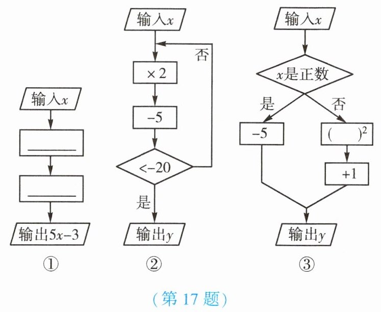 17. (★★★)计算框图中有很多的规范要求:“输入、输出框”用“$\boxed{}$”表示(表示输入、输出操作);“处理框”用“$\boxed{}$”表示(表示数据处理和运算);“判断框”用“$\boxed{}$”表示(根据条件决定执行多条路径中的某一条).
