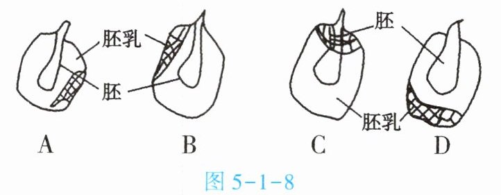 5. 图 5-1-8 四粒玉米种子的不同部位受到了损伤(阴影部位),在条件适宜的情况下,一定不会萌发的是【