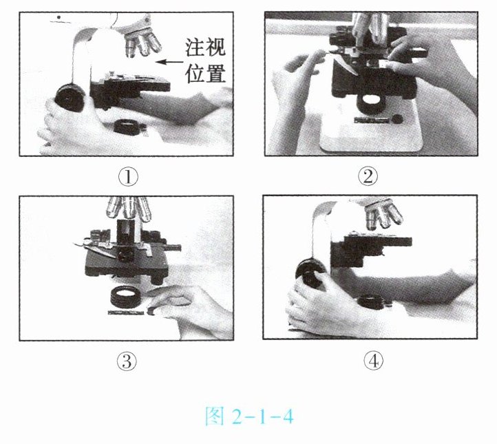 。(3)图 2-1-4 中的①~④是使用显微镜时的部分操作步骤,正确的操作顺序是