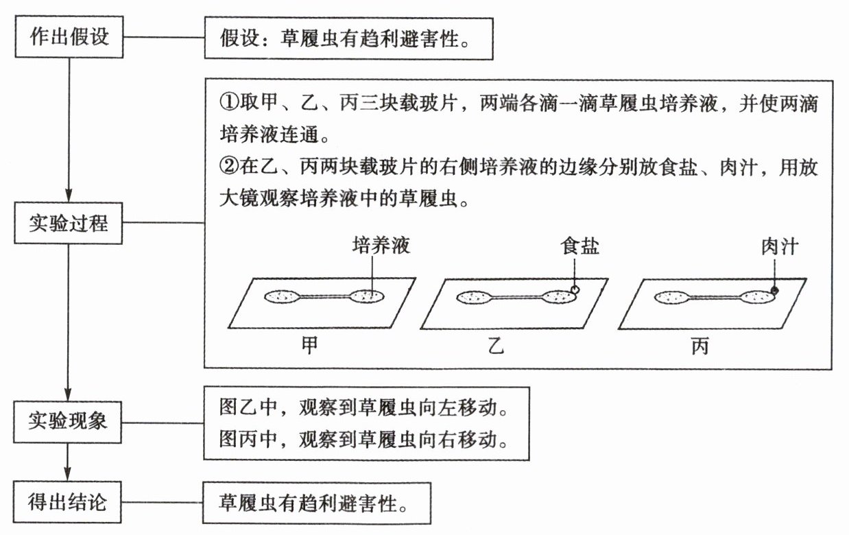 10. 草履虫是一种常见的单细胞生物,一般生活在池沼、小河、稻田等淡水中。某校生物学兴趣小组野外采集草履虫时,发现它喜欢聚集在有机物较多的稻秆附近,于是提出疑问:草履虫是否有趋利避害的特性?根据图2-2-2所示实验回答下列问题。