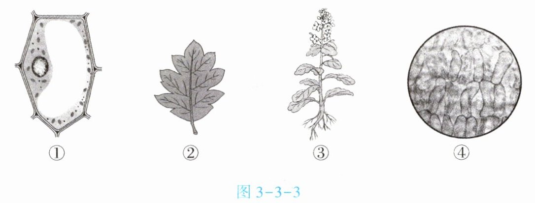 9. 图3-3-3为某绿色植物各结构层次示意图,将其由微观到宏观进行排序,你认为下列选项中正确的是【