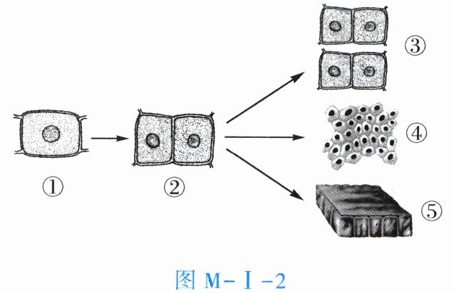 6. 生物体的生长和发育离不开细胞的生长、分裂和分化。植物细胞的分裂和分化过程如图 M-I-2 所示。下列叙述正确的是【