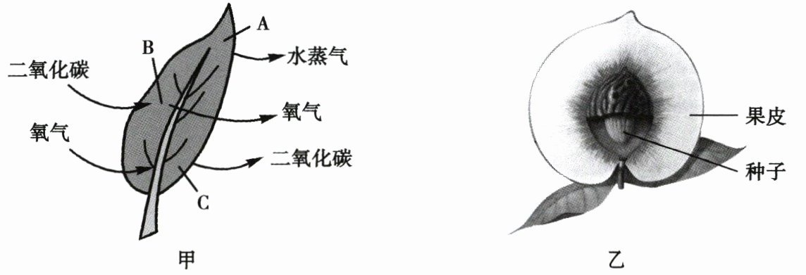 23. (3 分)桃子味美,是人们喜爱的水果。桃树的叶片、果实示意图分别如图 M-I-7 的甲、乙所示,其中 A、B、C 表示植物的生理过程。回答下列问题。