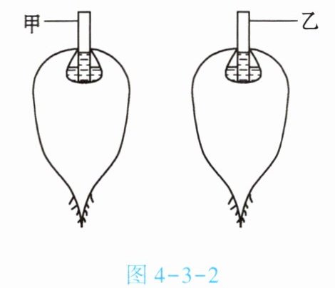 11. 生物学兴趣小组用两个大小相同的萝卜,分别在上面挖一个大小相同的洞,并在洞里插入一支口径与洞口等大的玻璃管,甲玻璃管内注入5mL清水,乙玻璃管内注入5mL浓盐水(如图4 - 3 - 2所示)。一段时间后,两玻璃管中液面变动情况是【